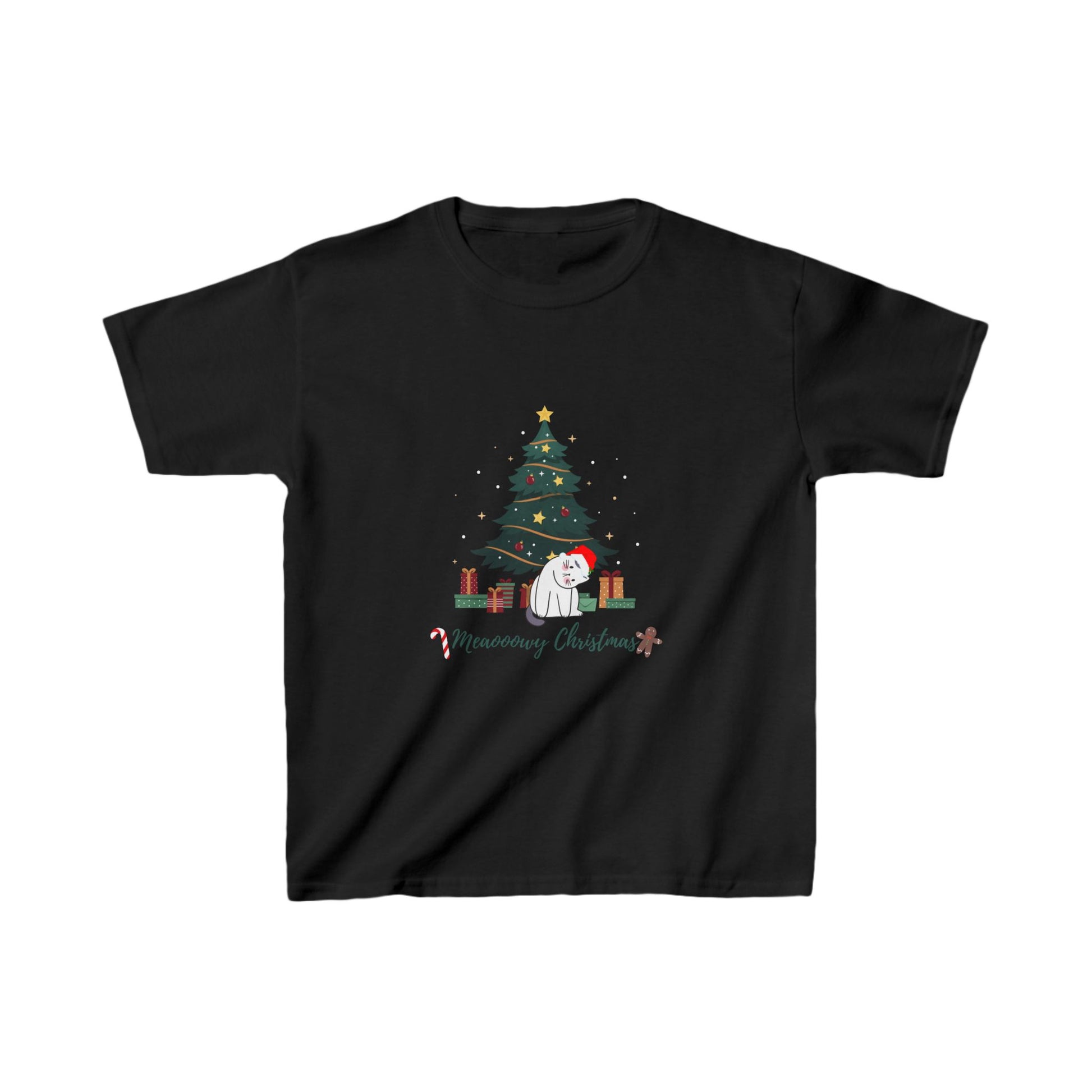 Kids funny cat christmas tree t-shirt Heavy Cotton™ Tee